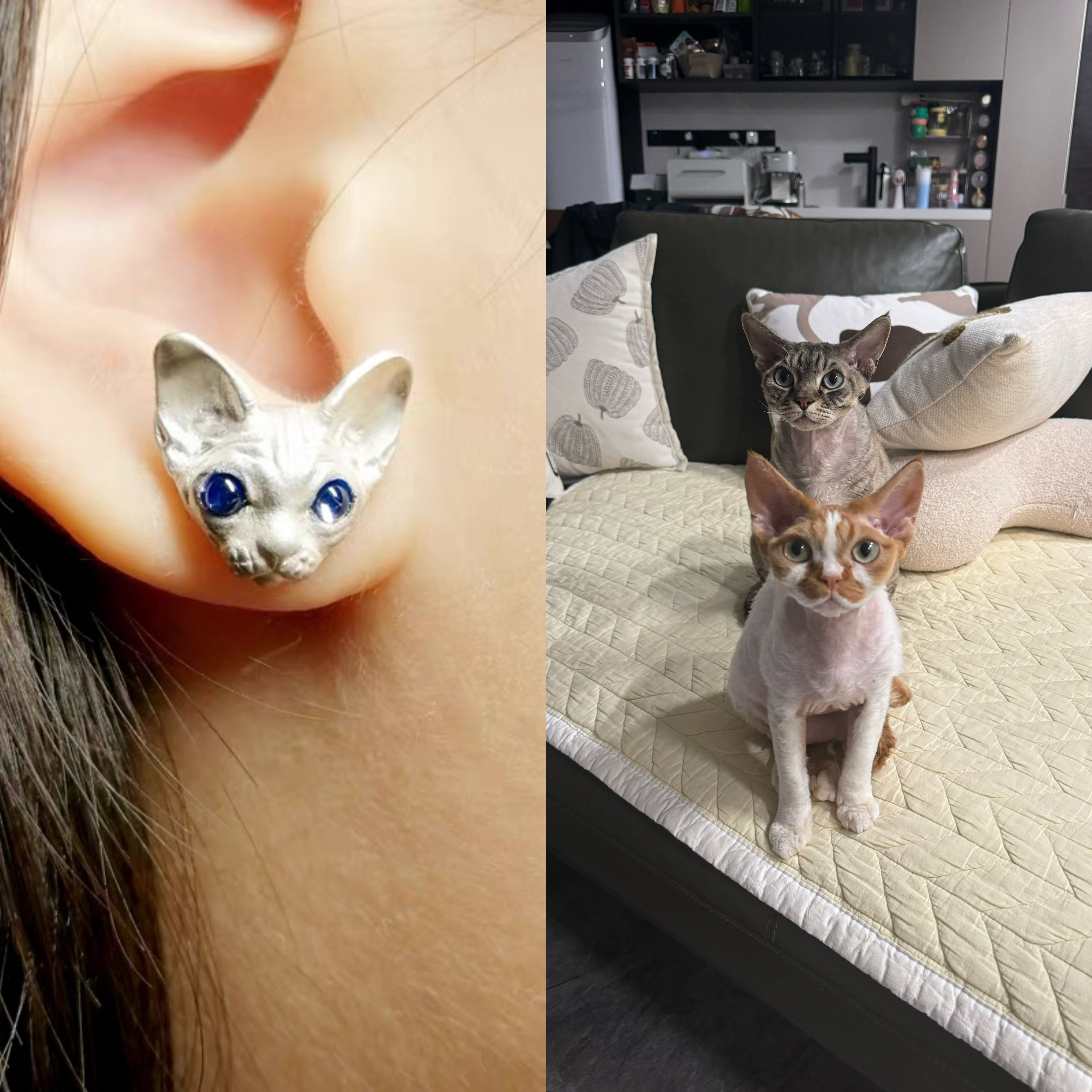 Handmade 925 Sterling Silver Sphynx Cat Earrings